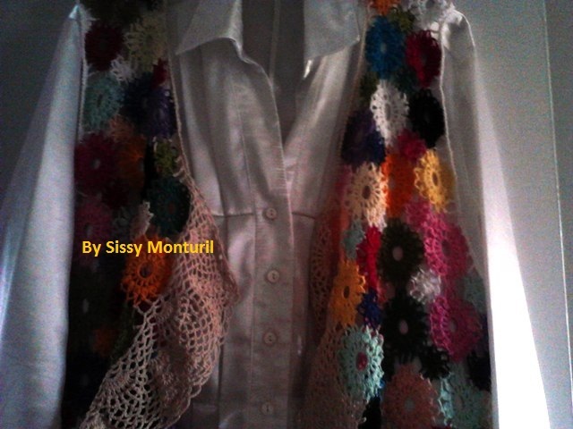 Como fazer:Fiz o colete usando as medidas de uma camiseta que coloquei como molde e fui unindo as rosinhas e as rosetas entre si.